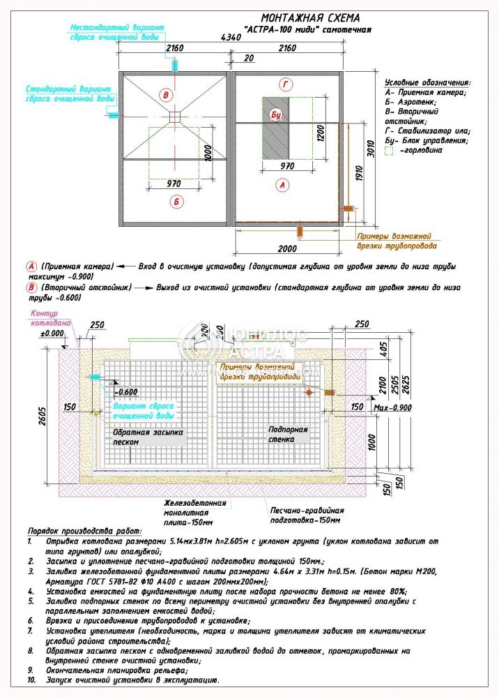 Насос для откачки: нет (самотечный сброс)